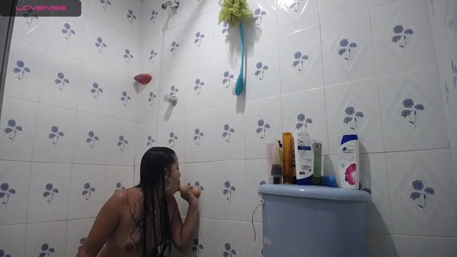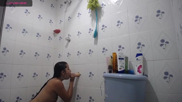 Brazilian stunner is having a douche in front of the camera and even stroking a bit