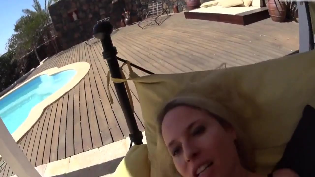 Huge-Chested blond COUGAR in rosy bathing suit luvs to fellate rigid boner on terrasse like nobody’s seeing