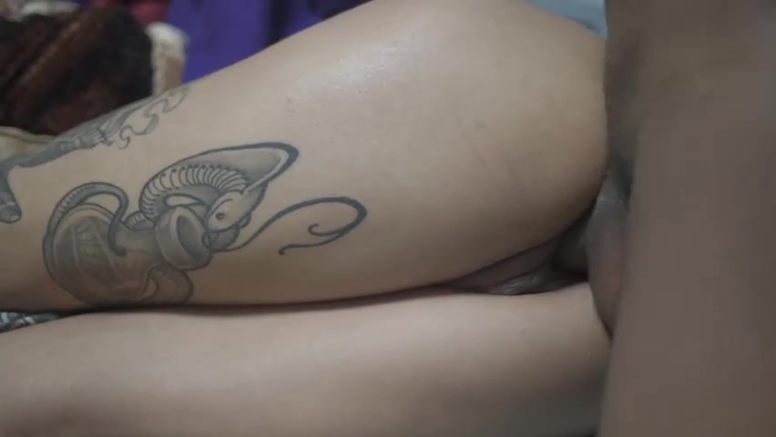 Tattooed honey with a yam-sized, chubby backside, Violet is squealing while getting nailed, late at night