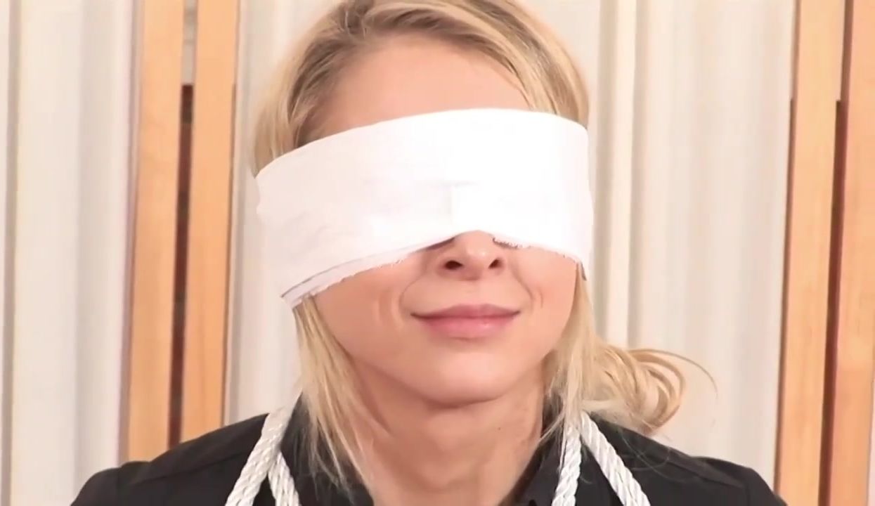 Blinded ash-blonde in black footwear with high high-heeled slippers, Alix Lynx got corded up cock-squeezing and luved it