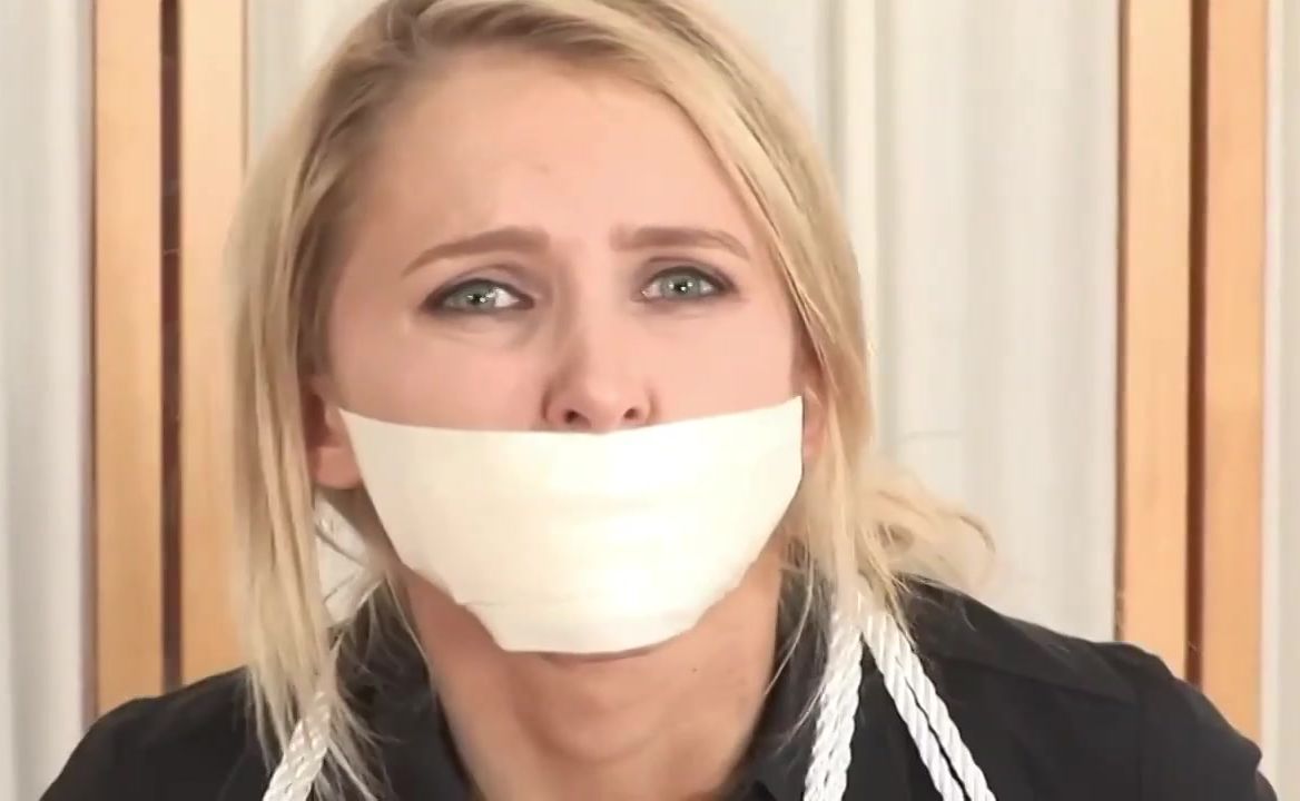 Naughty ash-blonde in footwear with high high-heeled slippers got bound up and left on the floor
