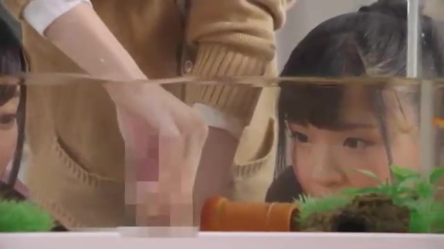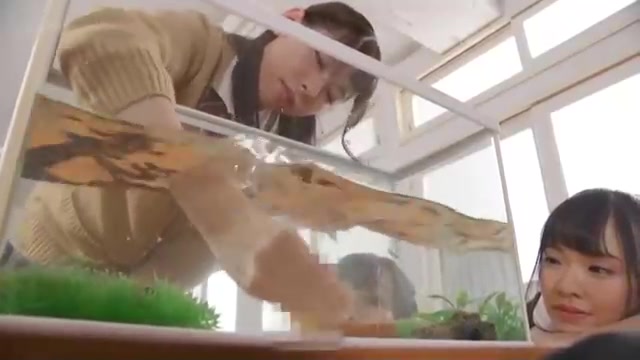 Asian chicks are being fierce with the fish in the tank, because it senses so fine