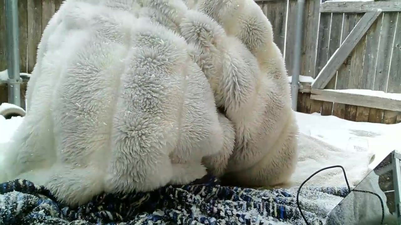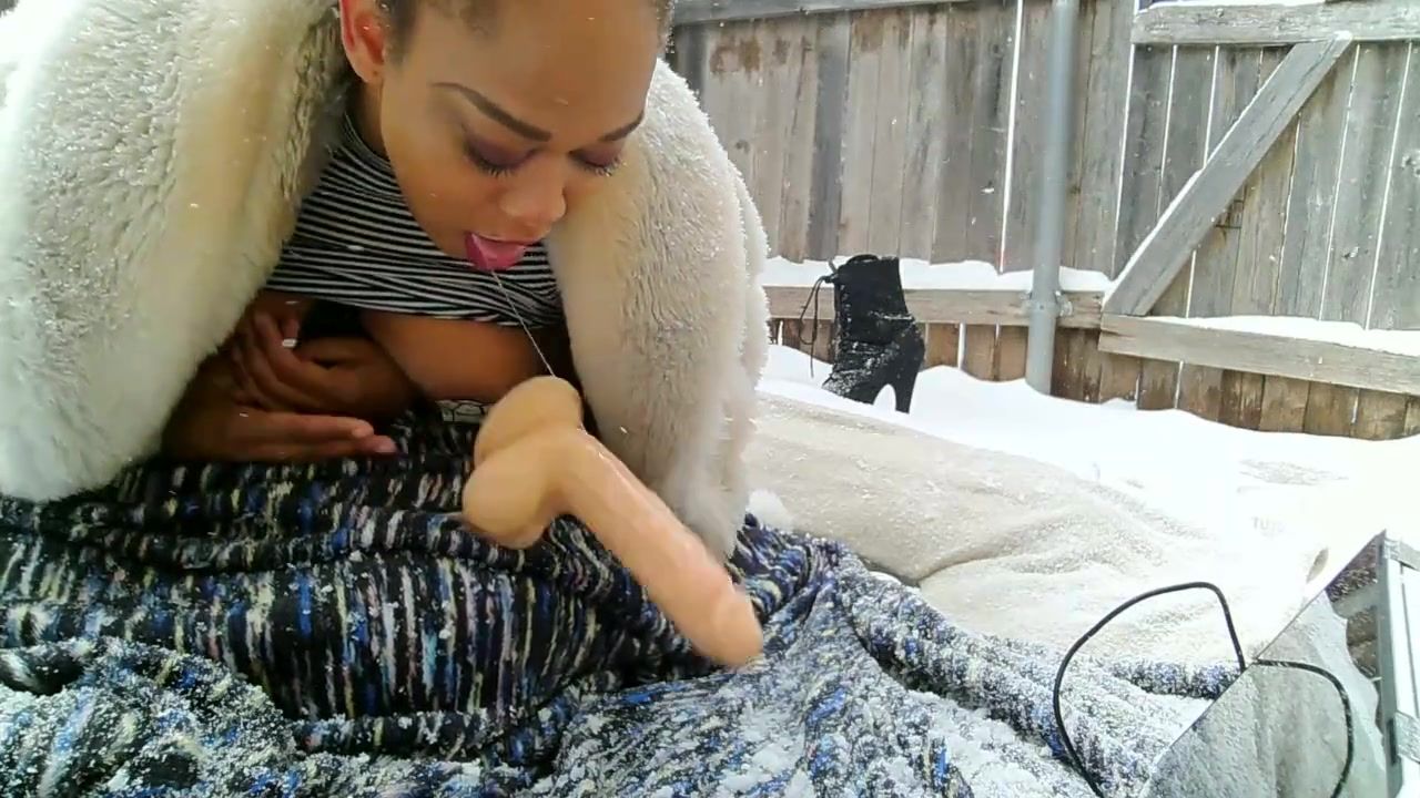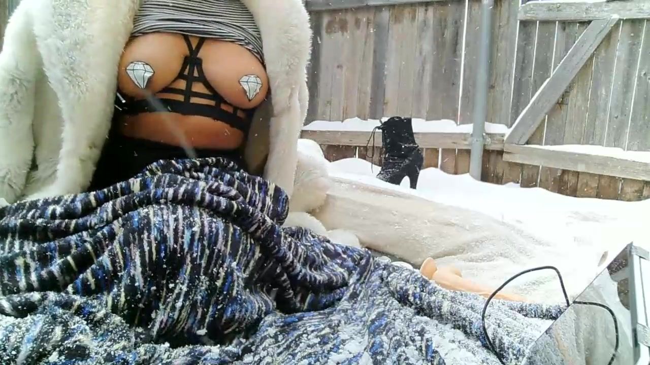 Huge-Chested female is fapping in the backyard while it's snowing and liking it a pile