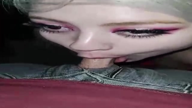 Blue- spotted platinum-blonde is getting down on all fours in front of her paramour and anxiously deep-throating his rock hard stiffy