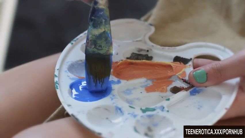 Wonderful painter, Sofi Goldfinger is getting down on all fours on the floor, while her man is shagging her tender booty