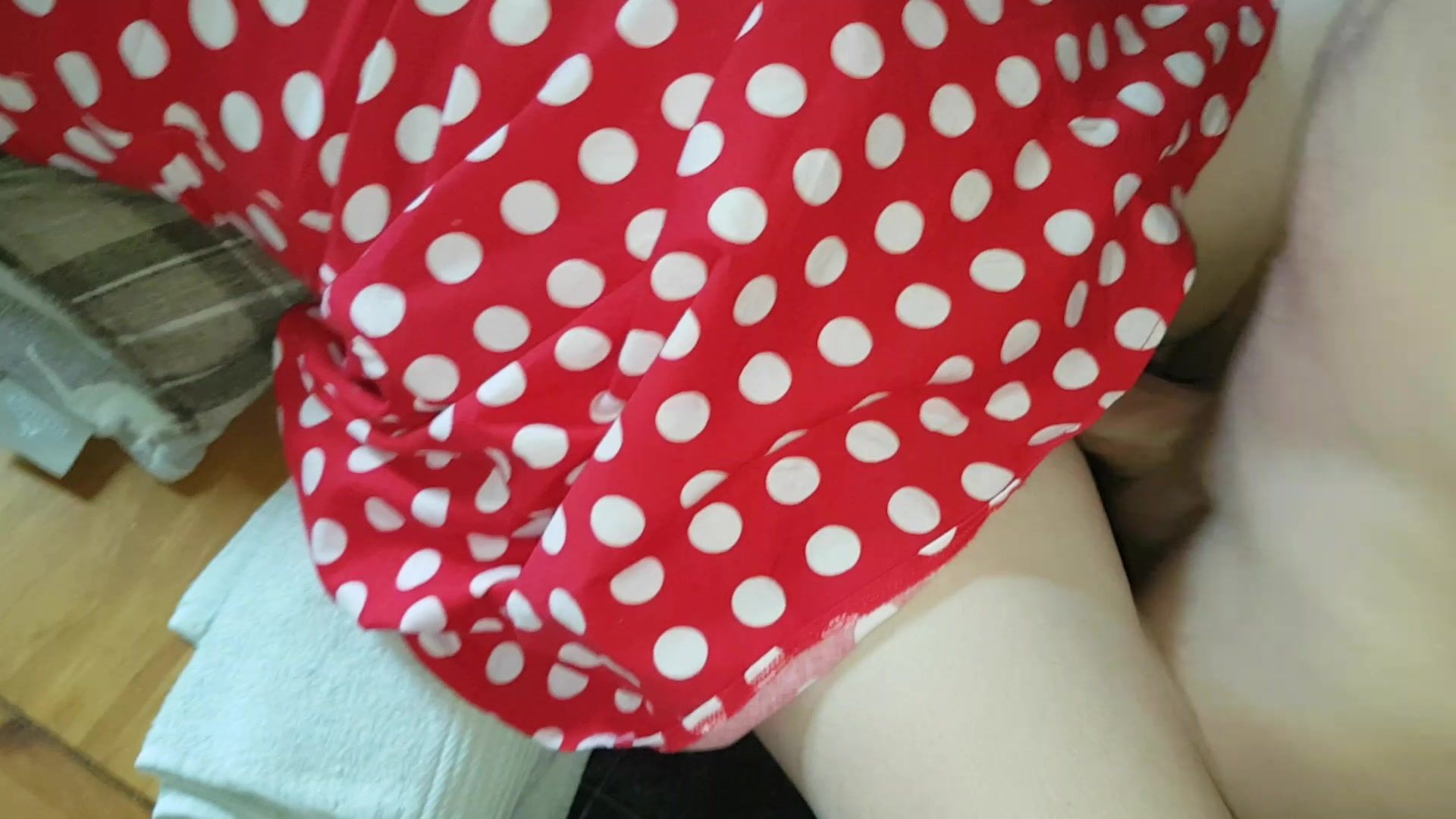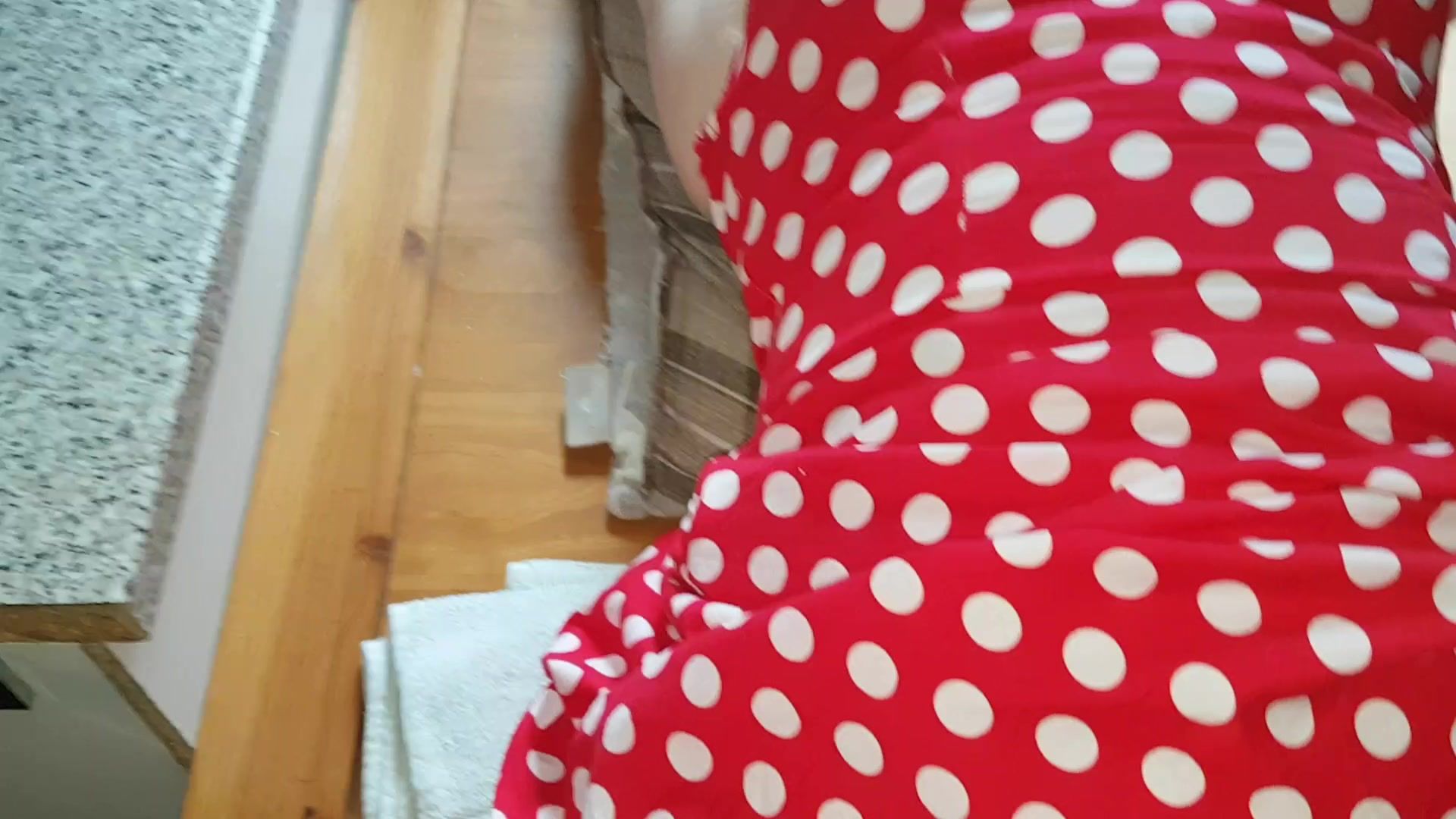 Stunning babe in polkadot dress
