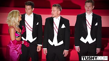 Adriana Chechik is getting gang-fucked on the stage, because it is part of the flash