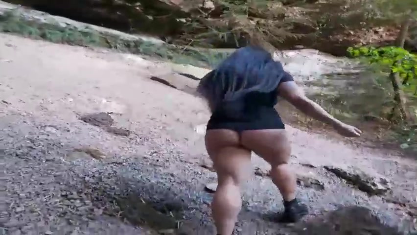 Sluty brown-haired is providing a sucky-sucky to a random stranger, while they are alone in the woods