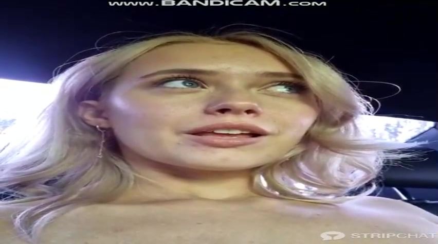 Flirty towheaded honey with blue eyea, Kate is frolicking with her fun bags in the truck