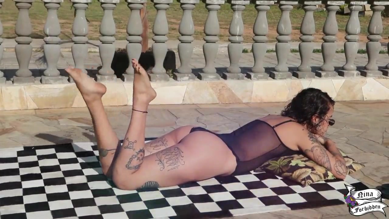 The neighbor's ball fell in my backyard and I instead of struggling I gave my bum to him.