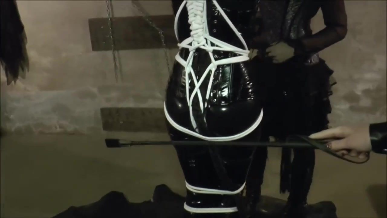 Cat Chick is dressed in her wonderful, spandex costume while being corded up and tormented by 2 nymphs