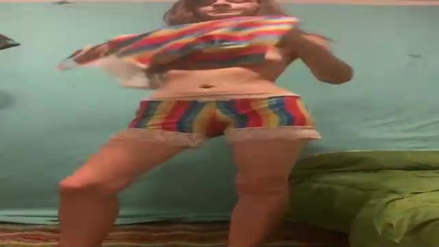 Crimson haired honey is leisurely taking off her clothes and dancing in front of the web camera
