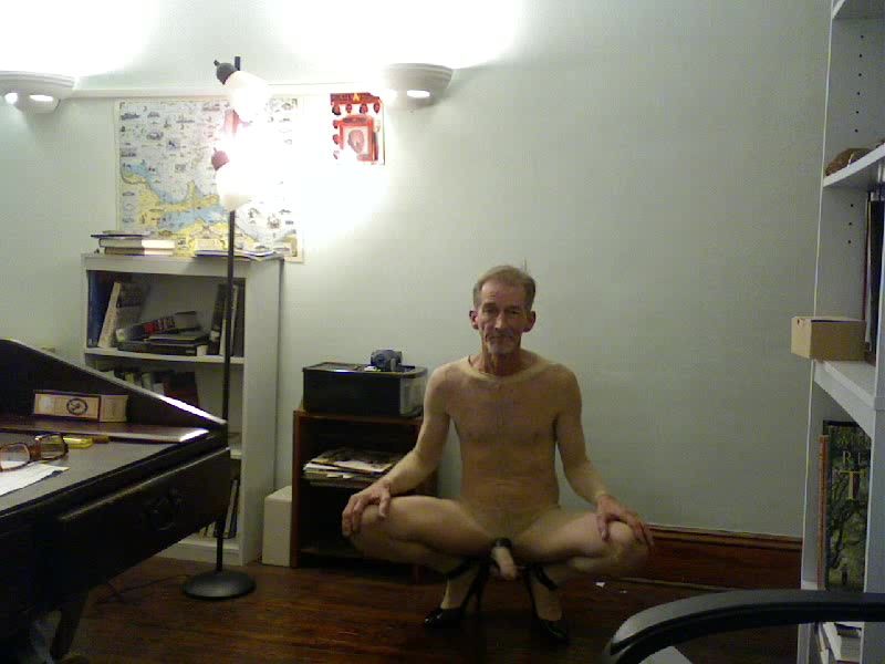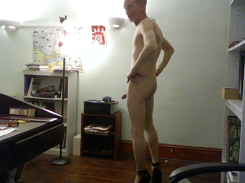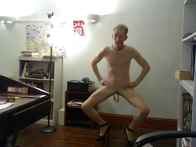ROBERT RICHARD MILGATE ENTIRELY UNSHEATHED DRESSED IN SHEER YELLOW STOCKING AND CRIMSON HIGH HIGH-HEELED SHOES