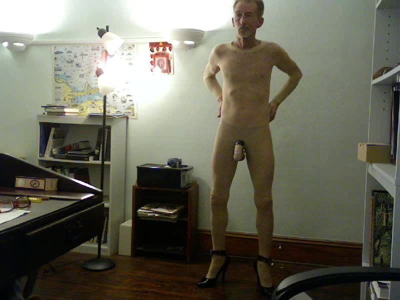 ROBERT RICHARD MILGATE IS A SLUT WEARING SHEER NUDE NYLON BODYSTOCKING AND HIGH HEELS
