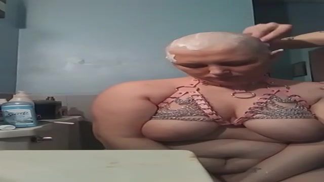 Lush gal is getting her head bald in front of the camera, just for joy