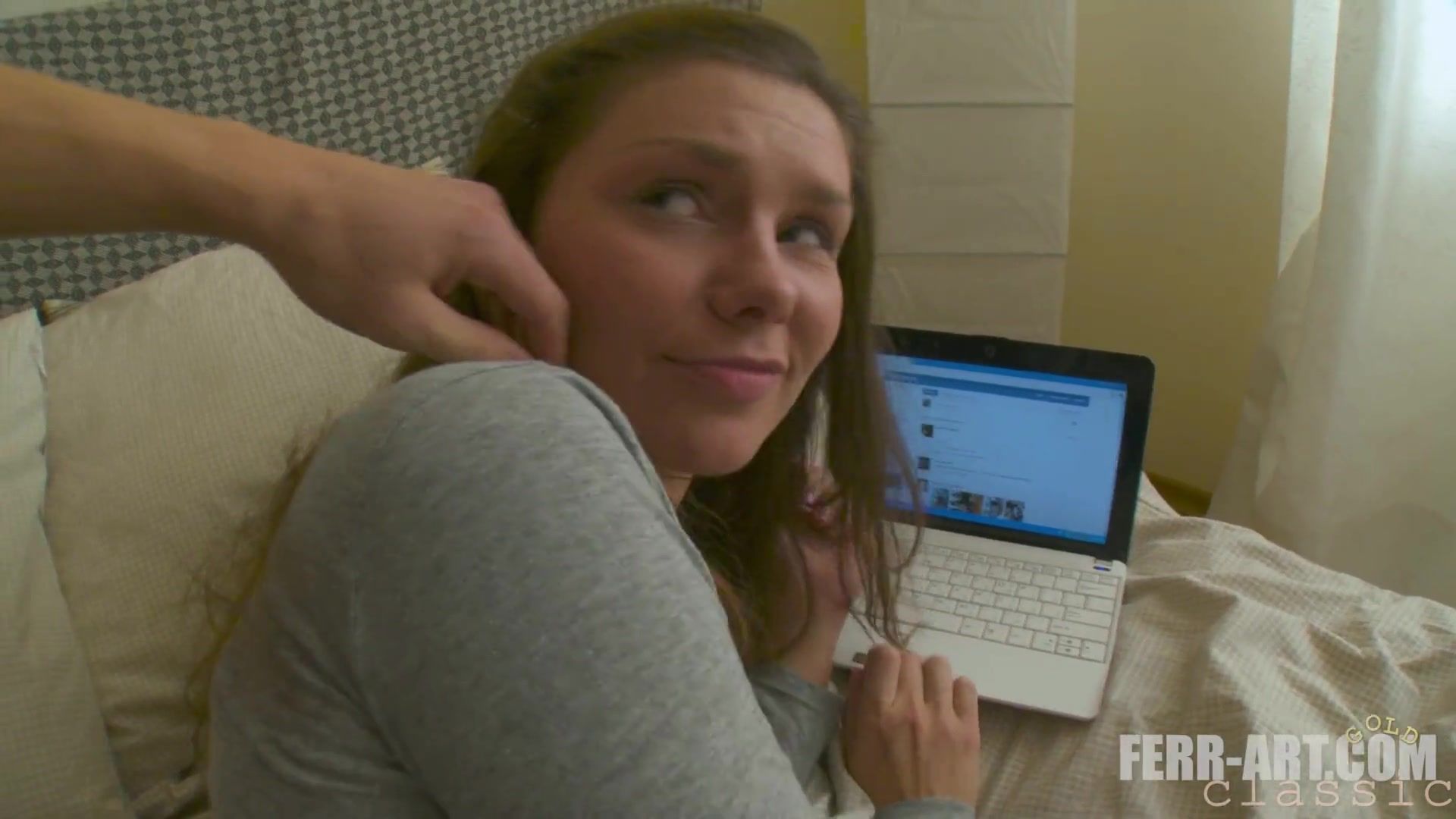 Adorable taut donk dark-haired teenager explores then gets interrupted and tempted to have fuck-fest