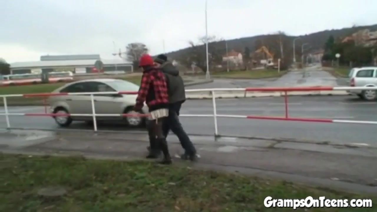 Whorey manhood inhaling drill teenage nails oldie in public outdoors then takes money-shot