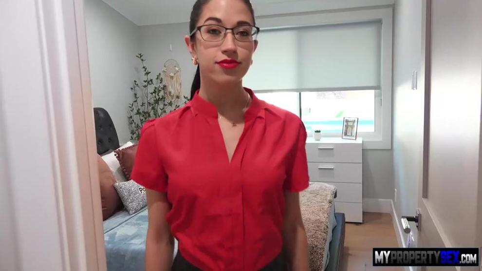 Magnificent warm brown-haired nerdy teenage Alex Coal likes monstrous meaty white man rod up in her yummy vulva from behind on her bed while testing