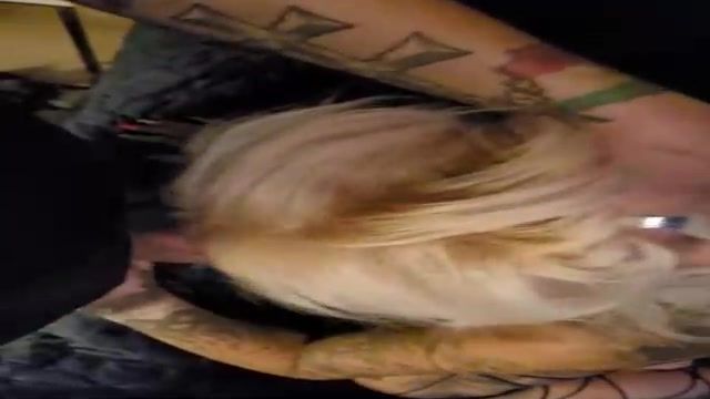 Inked, Swedish blond with hefty hooters is providing a oral pleasure to a kinky camera dude