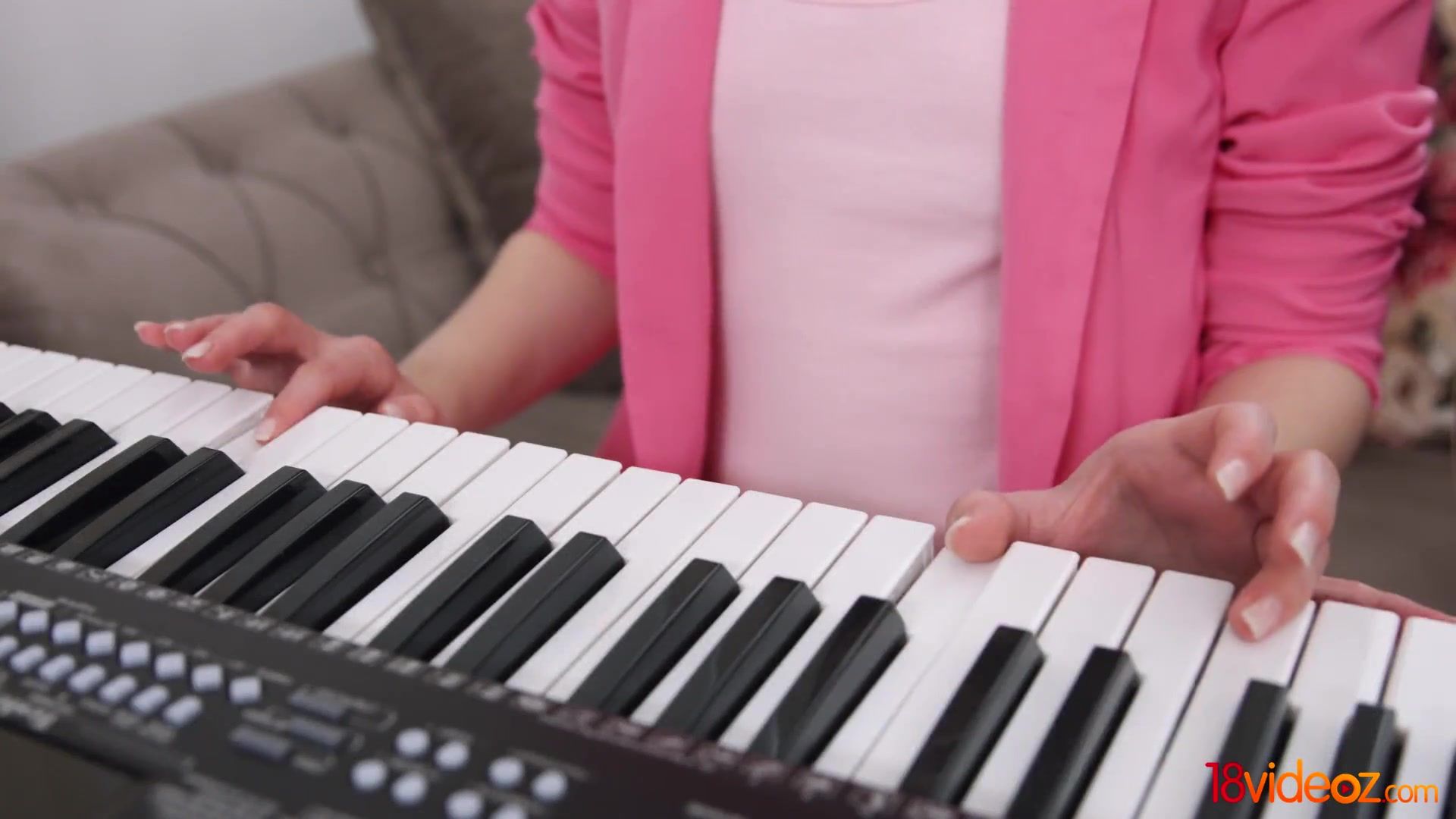 Diminutive titied Bella Gray is getting pounded on the sofa during her intimate piano lesson with schoolteacher