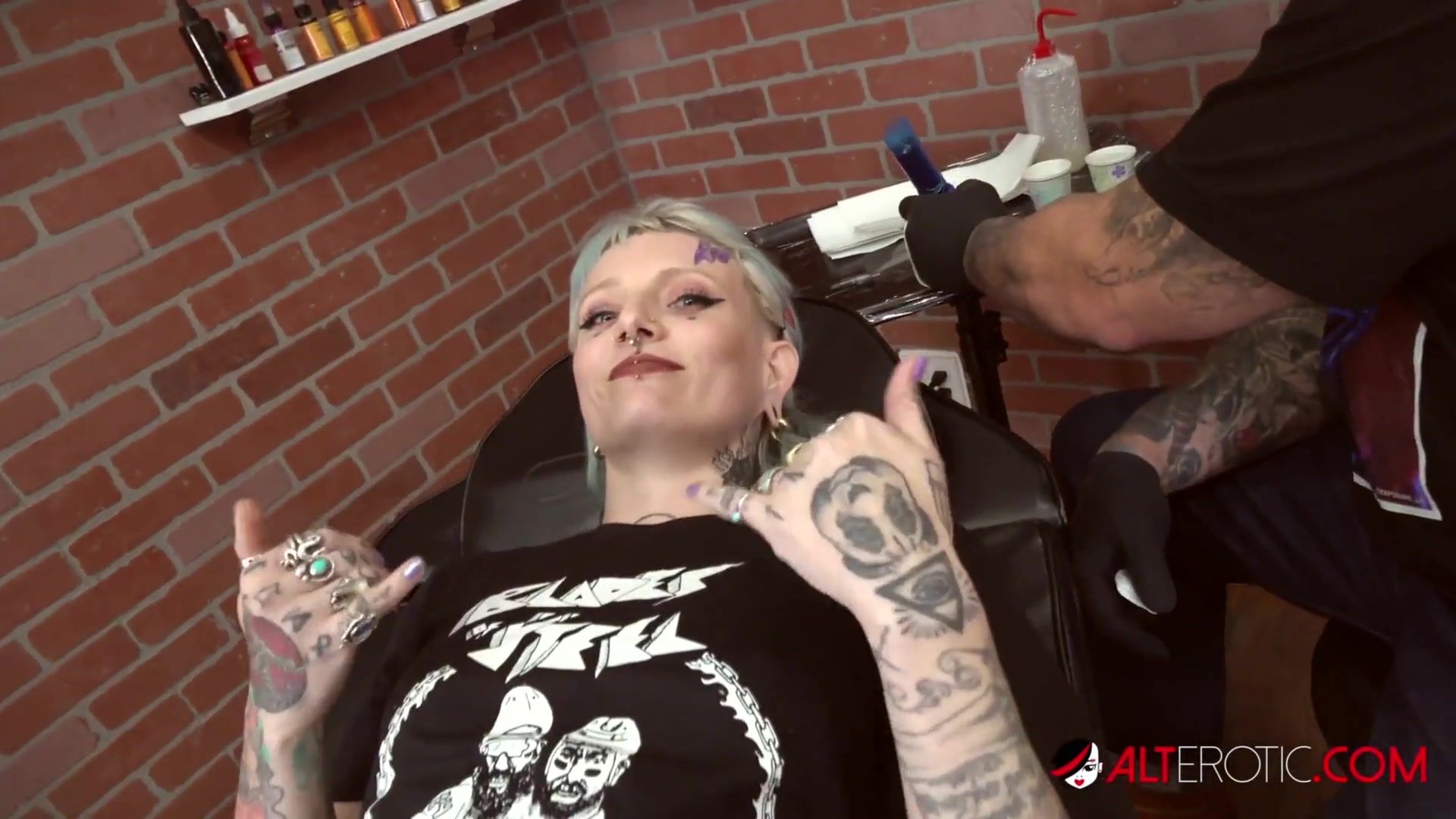 Darcy Diamond And Kennedy Rose Get Alt Softcore Logo Tatted And Poked By Evilyn Ink - Malisa Moir
