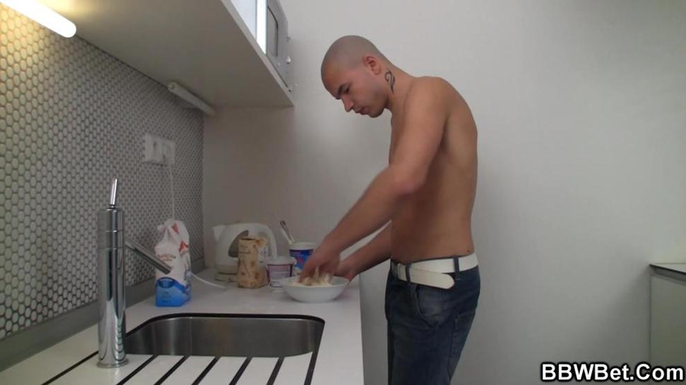 BBWBET - Good-Sized tummy bbw rails sausage on the kitchen
