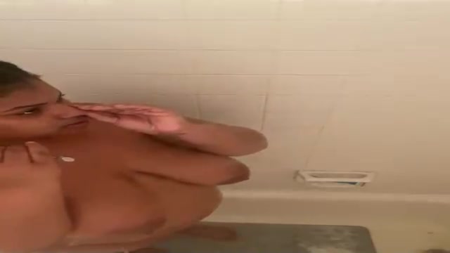 Large, Ebony dark haired with yam-sized bosoms is having a bathroom in front of the camera