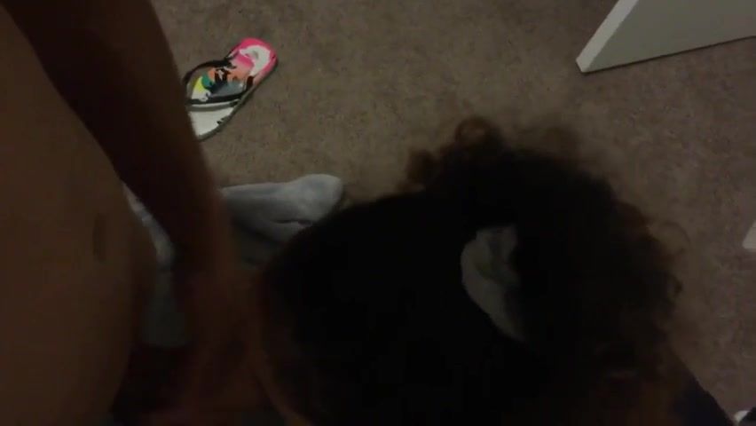 Ebony bitch with a yam-sized donk is providing a deep fellatio to her paramour, just for joy