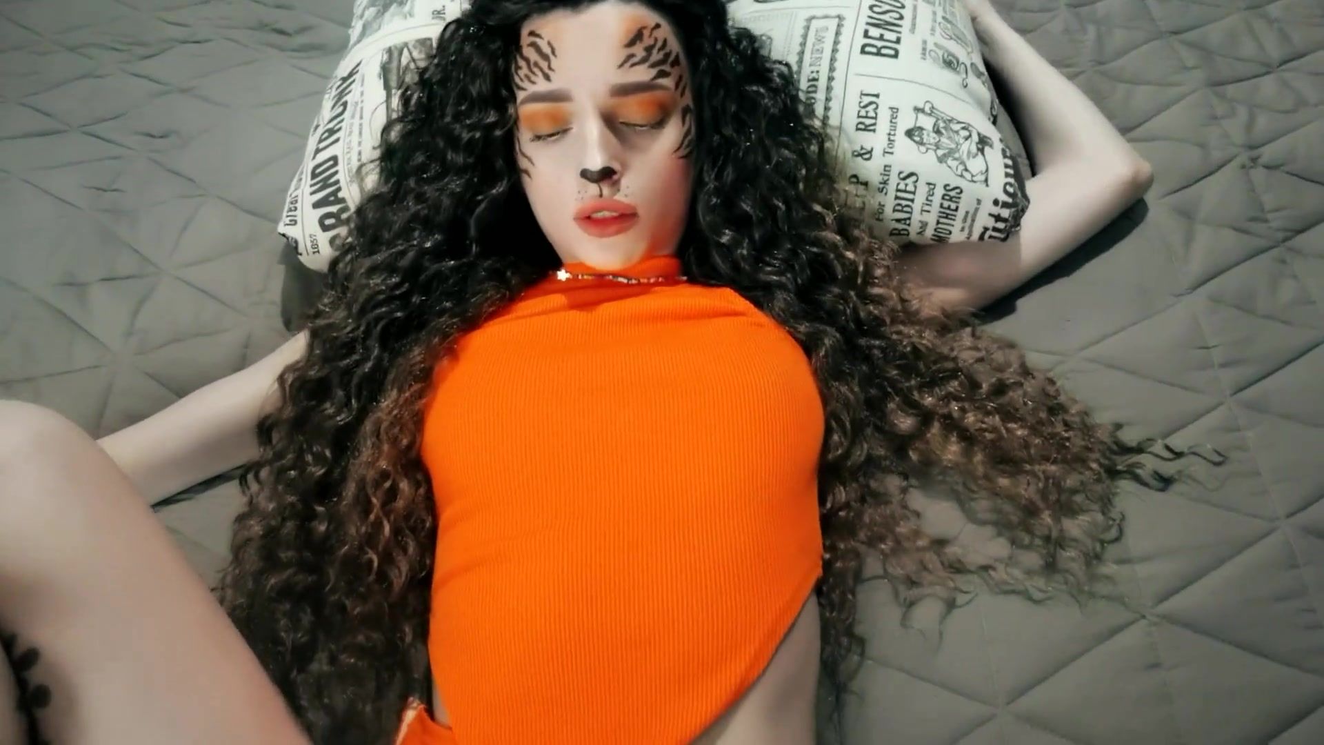 Provocative, Dark-Hued woman with curly hair, Saffari Tiger got drilled rigid, in front of the web camera