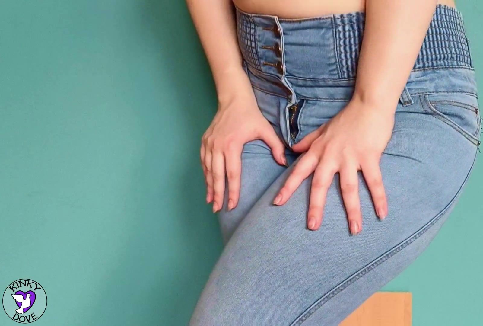 Thin teenager enjoys to piss in her taut denim soaking herself fully by wanking her clean-shaved gash