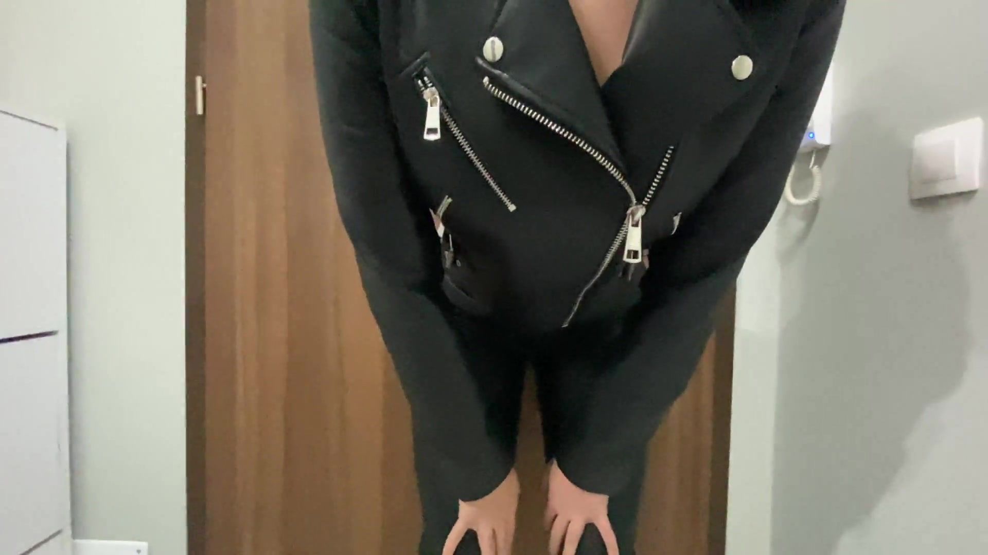 Kinky gal w Leather jacket came after techno soiree eliminate rubber