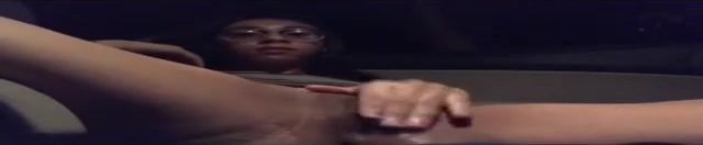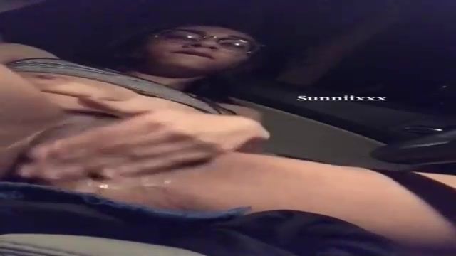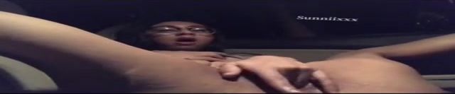 Wild dame with glasses is caressing and frigging her moist cooter in the back of a van