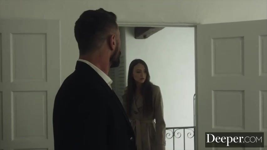 Horny brunette gets facial from Dante Colle and his hot buddy