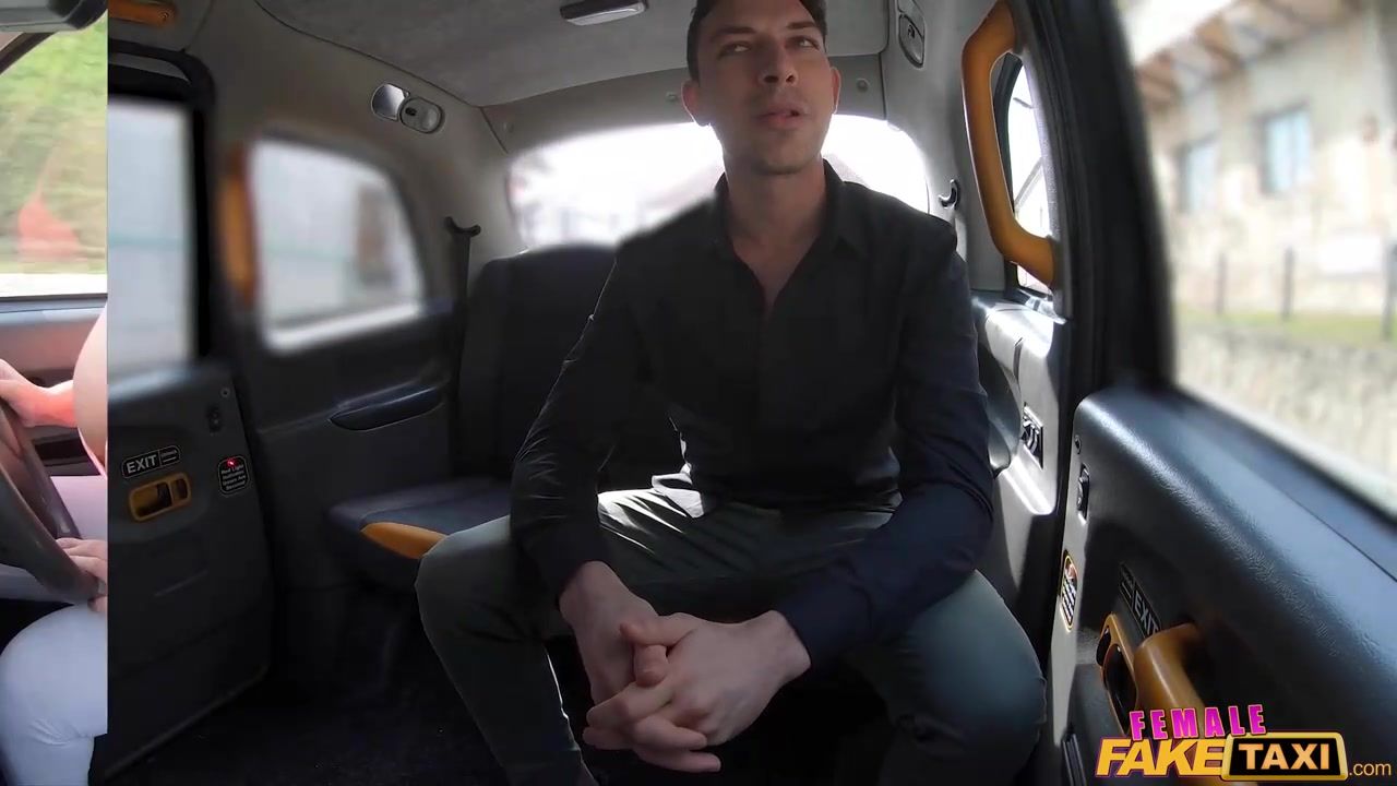 Infatuating blondie cab driver is having casual hook-up with one of her customers, on the front seat