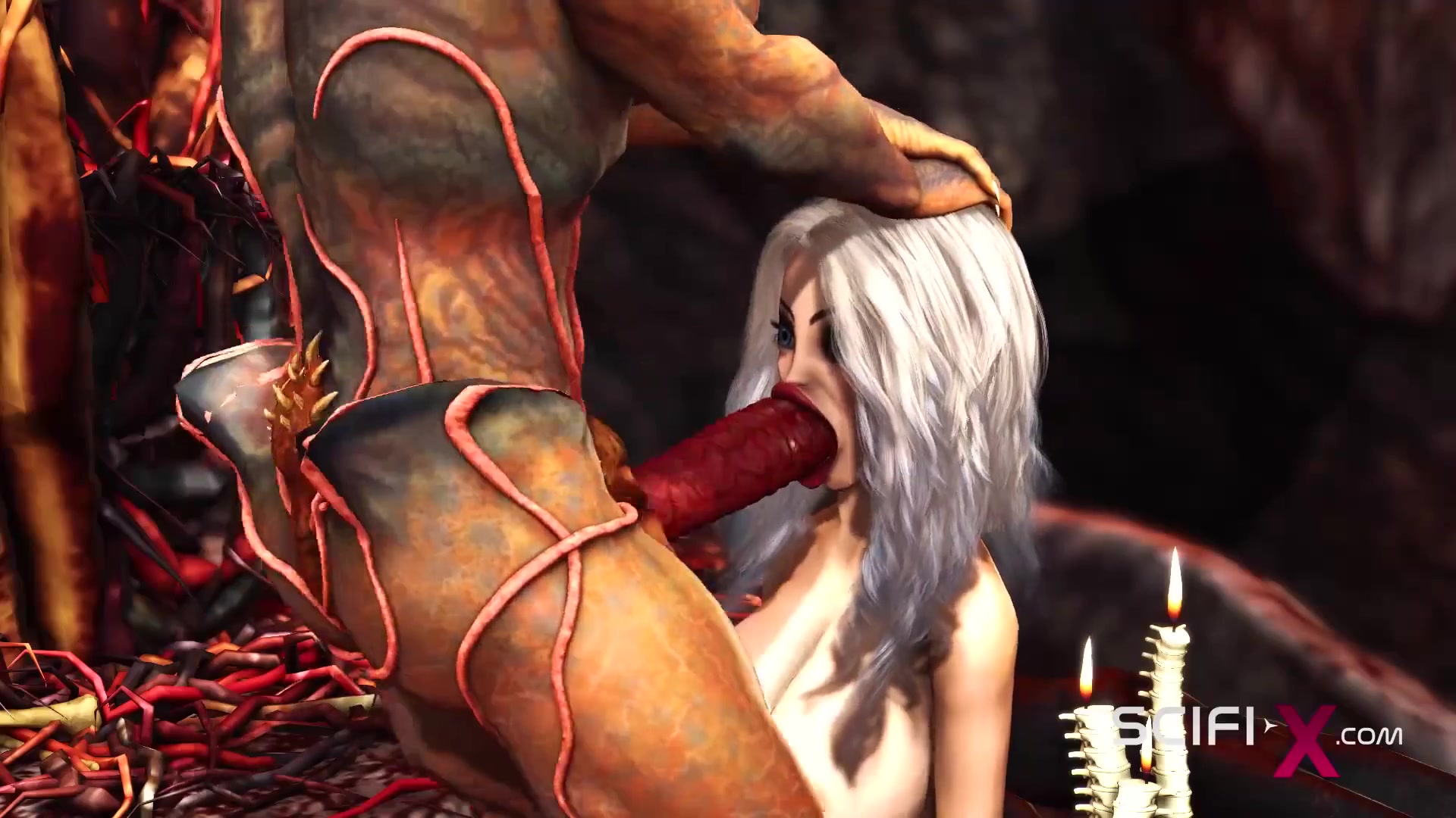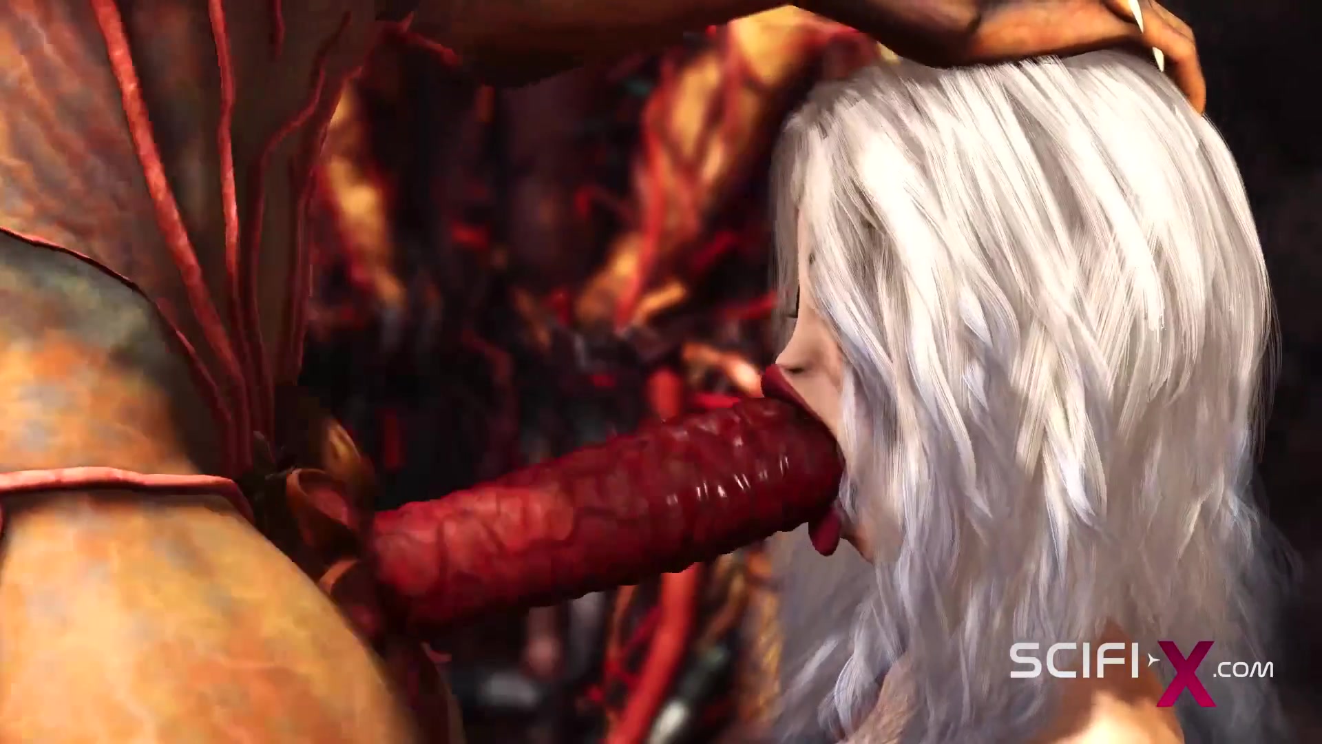 Alien porks rock hard a luxurious ash-blonde in her bum in the fire cavern