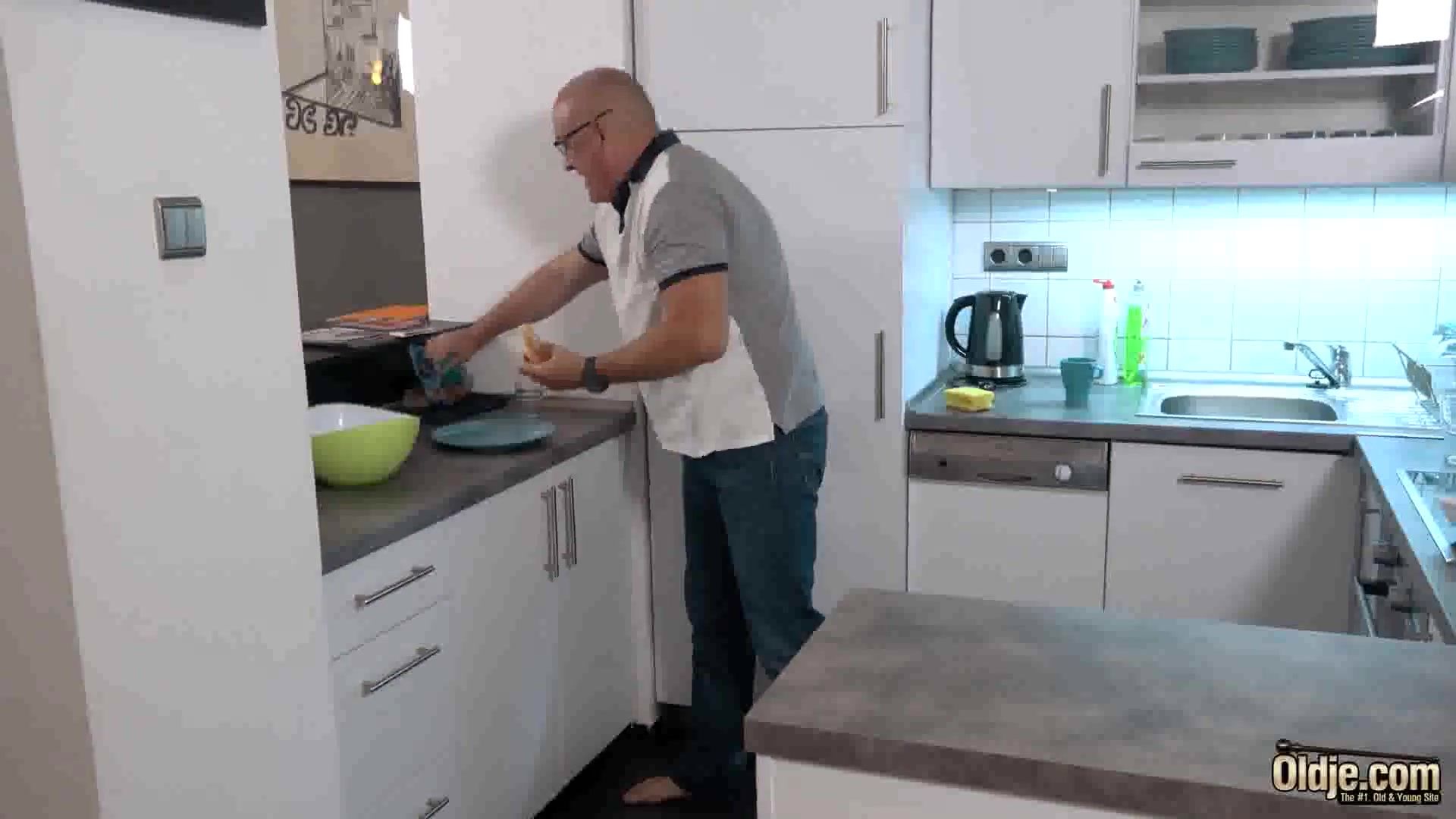 Ponytailed honey, Sarah Nice is providing a oral pleasure to a insane granddad, while getting down on all fours on the floor