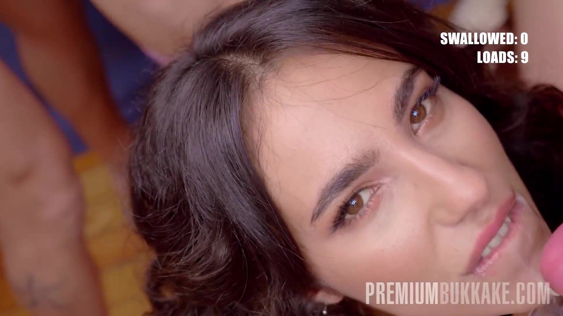 PremiumBukkake - Bella Rico gulps 62 thick mouthhole jizz shots