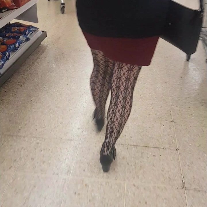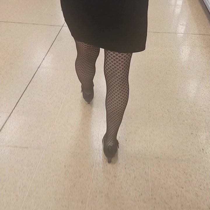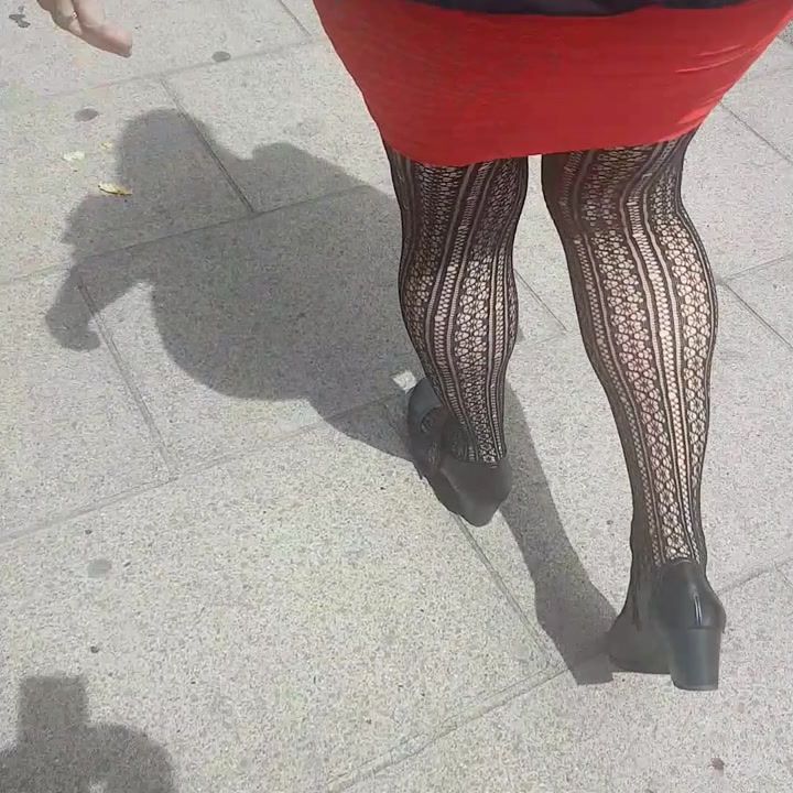 Sexy legs in nylons walking in public