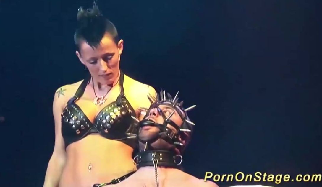 Huge-Chested dark-haired with pierced nips is doing all kinds of super-naughty stuff on the stage