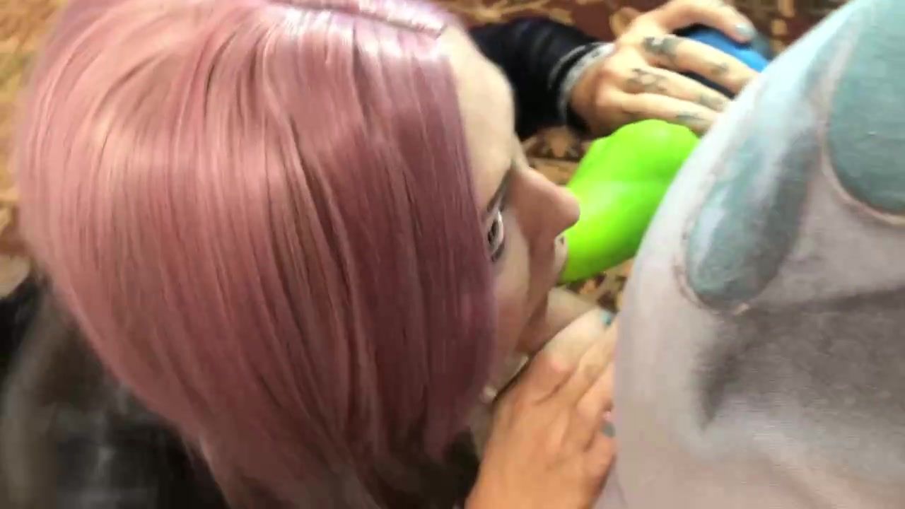 Round schlong teaser with neon hair, Cinnamon Anarchy is toying with a massive, black fucky-fucky fucktoy
