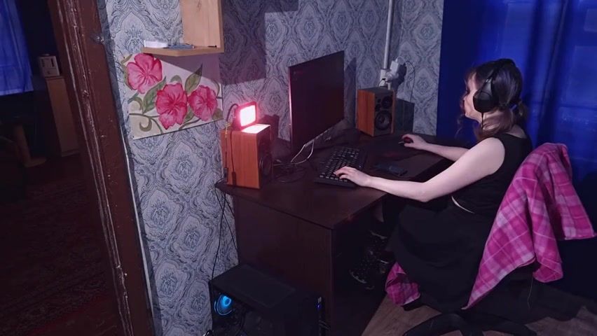 Ponytailed teenager brown-haired is delicately gargling a married boy's man sausage, in front of the web camera