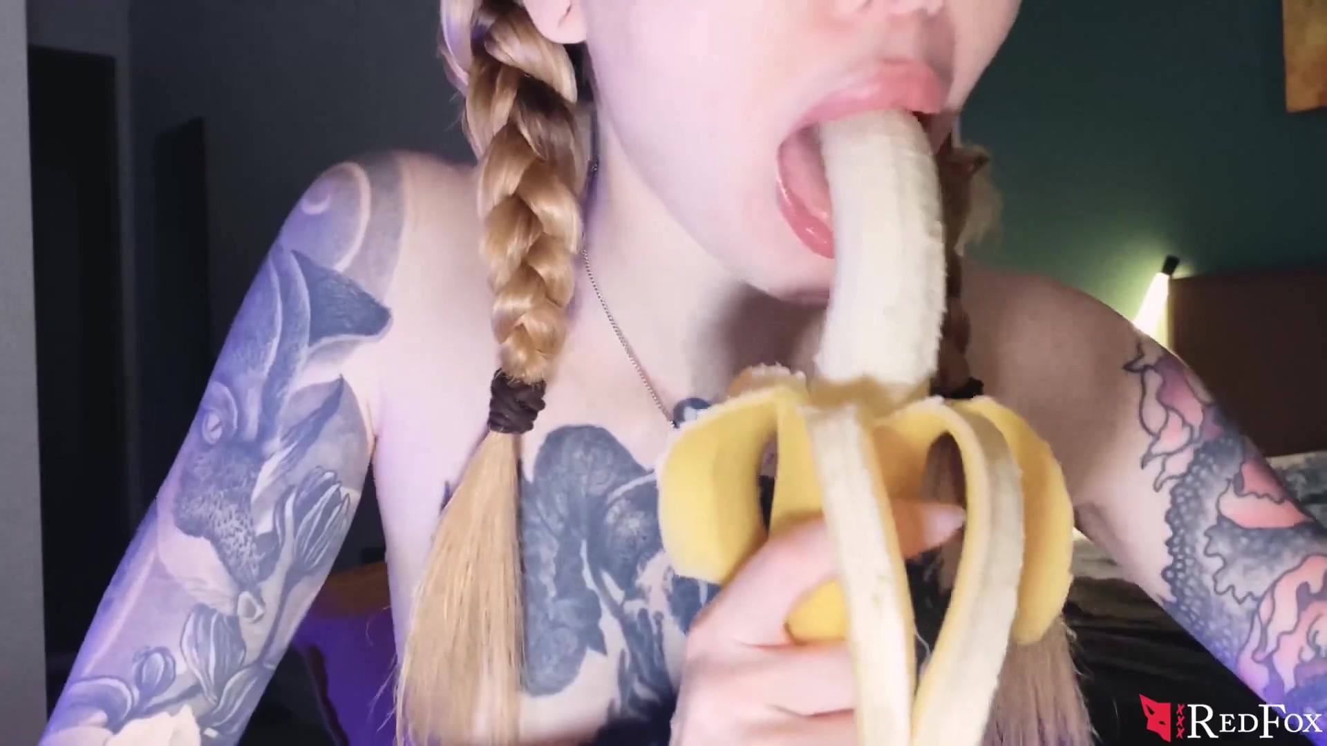 Inked Woman Deepthroating Banana with Mayo and Fap Honeypot until Climax