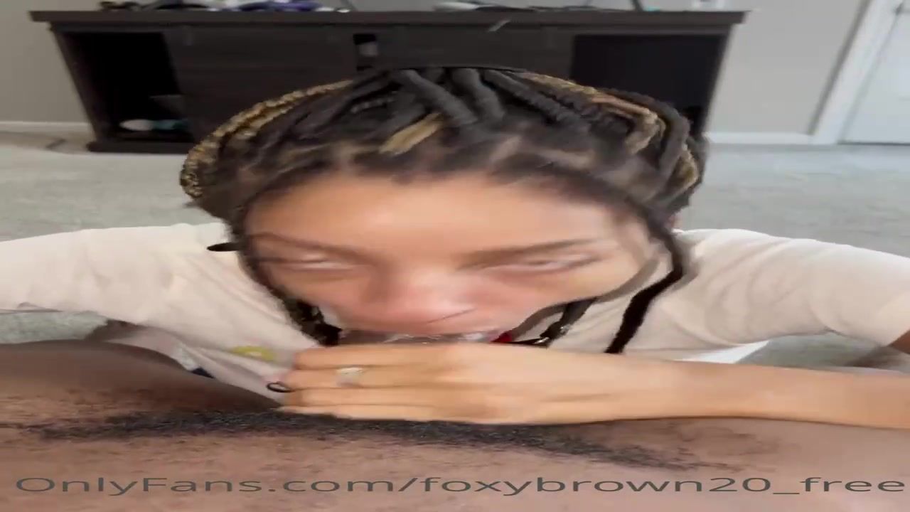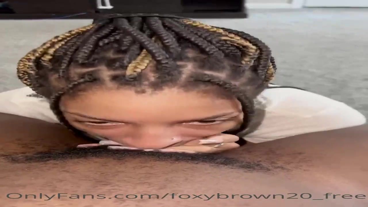 Naive Ebony stunner is anxiously blowing a ample, black knob while getting down on all fours on the floor