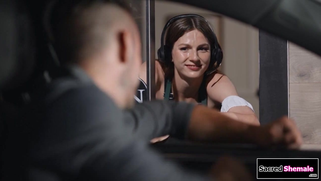 Trans cashier Amanda Riley flirts with a client and they kiss.The small tits tgirl deepthroats his big cock and then the guy asslicks her.Another client arrives and the the brunette ts gets barebacked as he watches.Then the shemale gets anal reamed