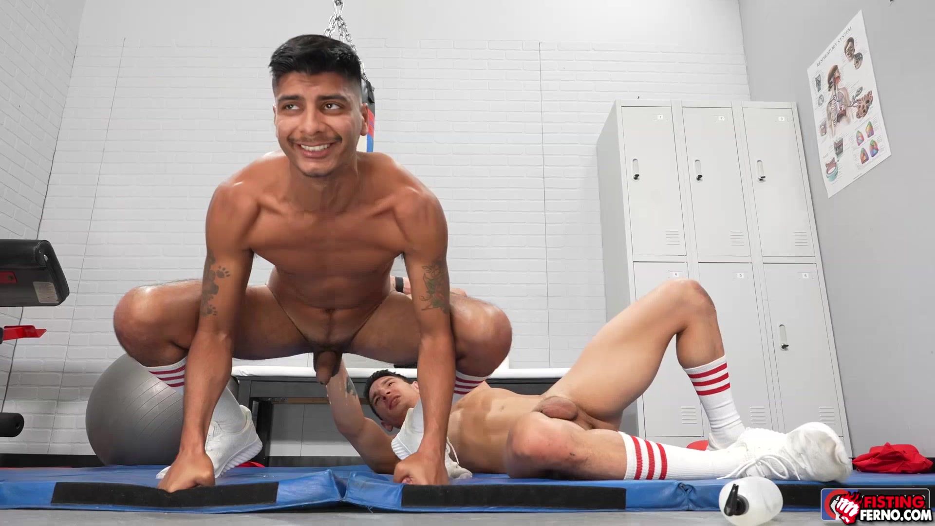 Naked and stroking off in the middle of their gym, Jim Fit and Apollo Fates are ready to stretch some hole and push the physical limits of their bodies. Jim kicks things off by sucking off Apollo's cock, rimming his sweaty hole, and barebacking his muscular ass.