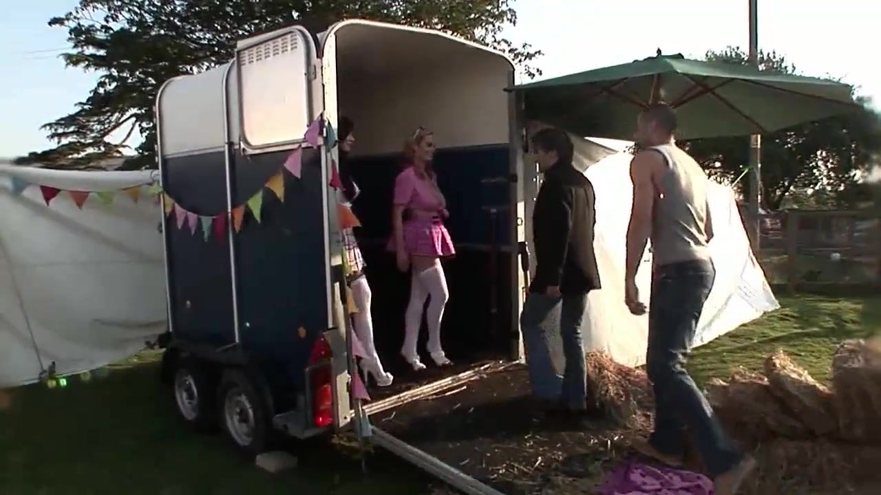Buxomy woman is squealing while getting drilled from behind, in the nature, in the late afternoon