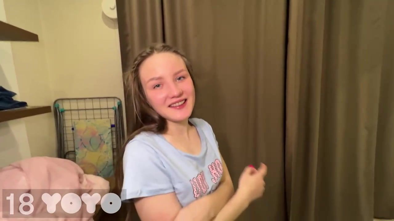 Supple teenage black-haired, Yoyo is stretching her gams broad open to get smashed and creampied