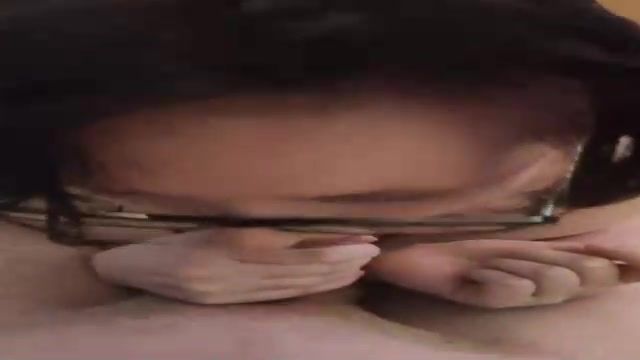 Nerdy doll is dressed in glasses while deep throating her step- parent's firm schlong, to make him jism
