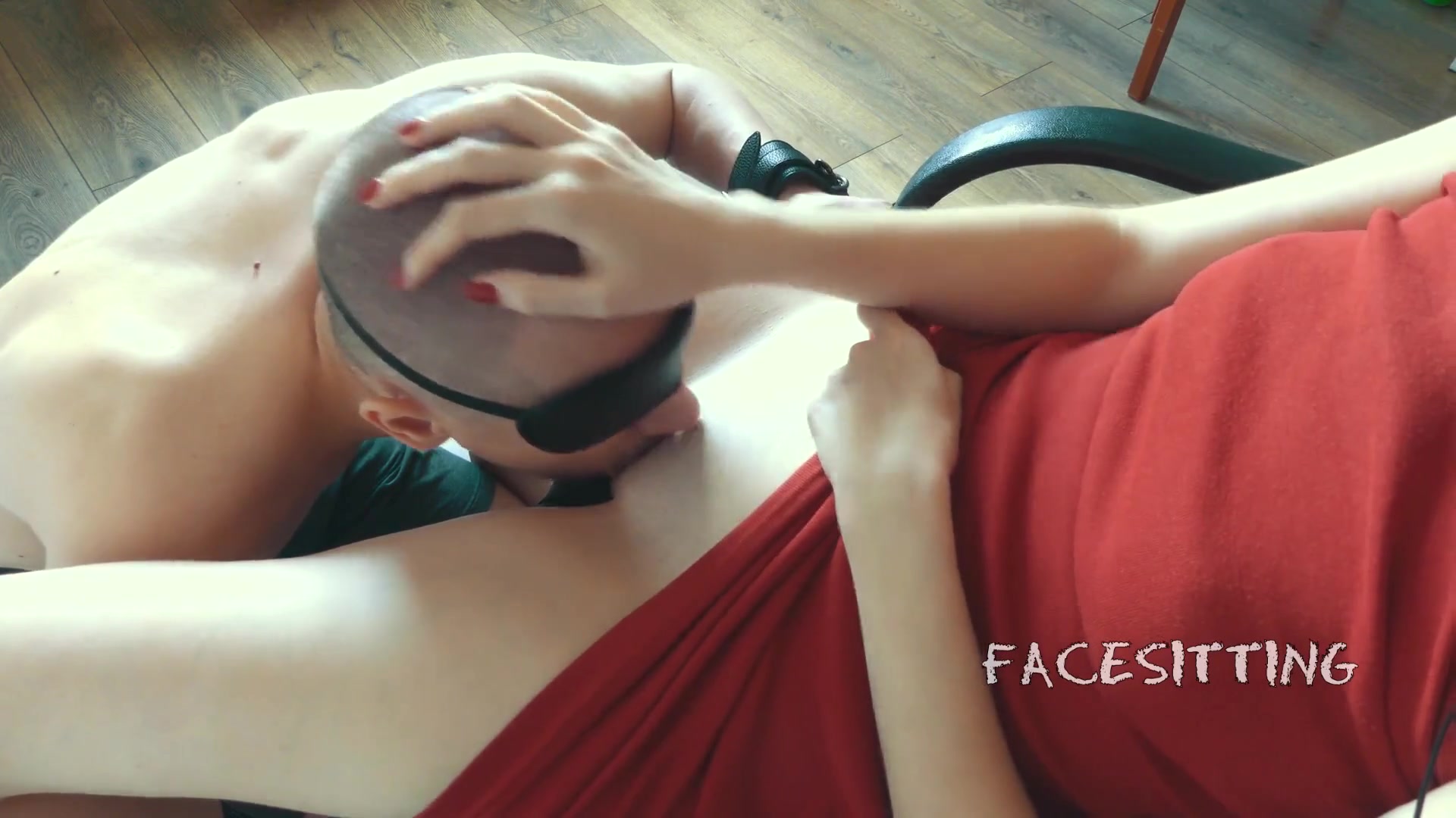 Shackled sub munches puss on the orders of domme, russian female dominance pussy eating, damsel predominance