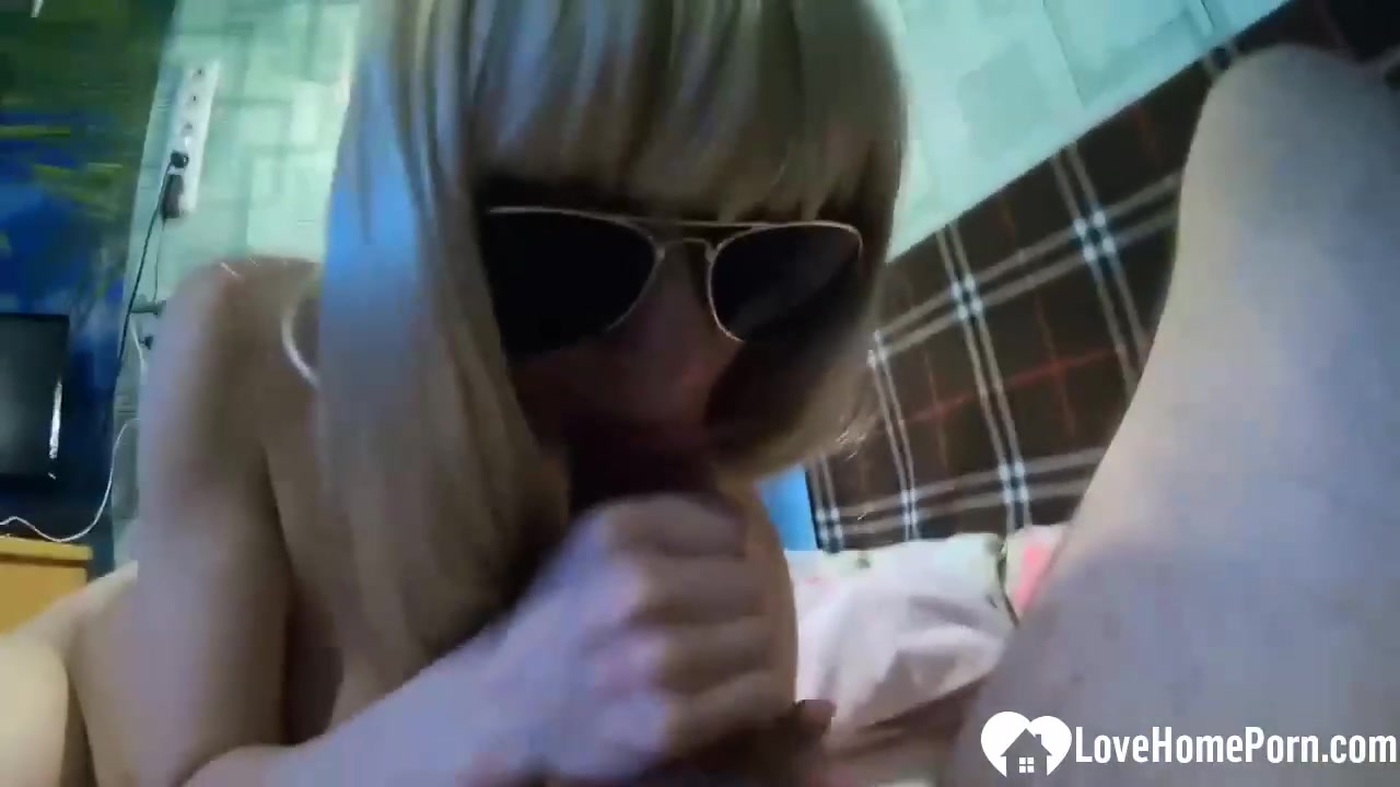 Redhead Latina amateur blows dick in sunglasses